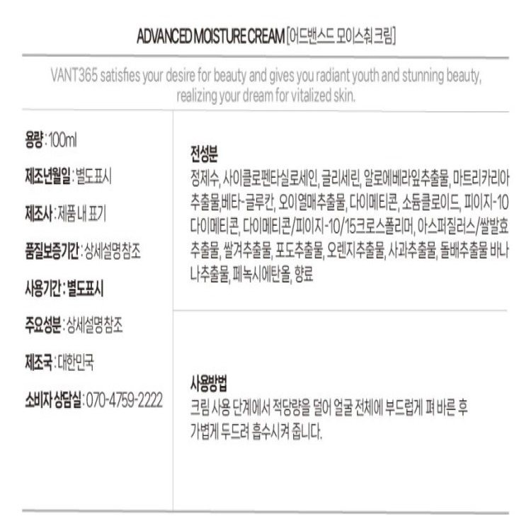 VANT36.5 moisturizing cream large capacity (100ml) launched in department stores / VANT36.5수분크림 대용량(100ml) 백화점입점