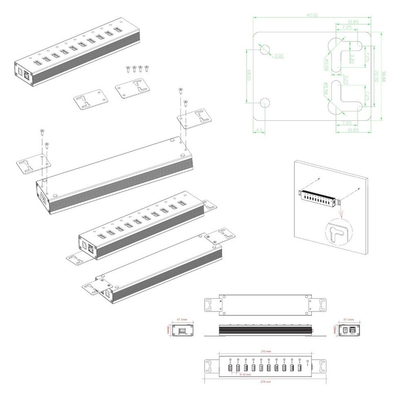 - No drivers needed, just plug and devices will be ready for use; Clear hub power LED indicator backward compatible with all legacy USB 2.0 and 1.1 devices; anti-slip rubber feet; Comes with wall/desk mount Kit