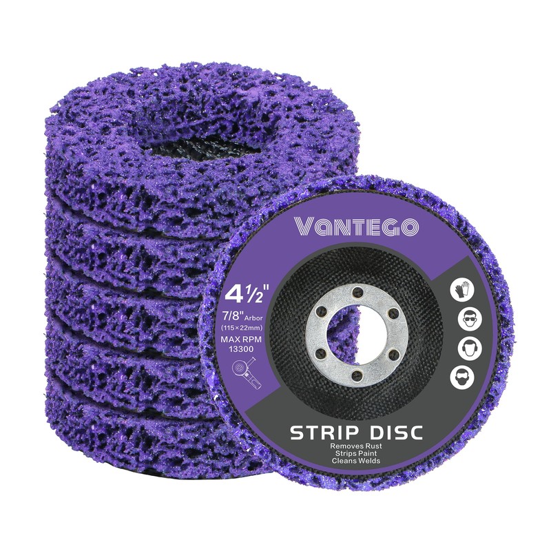 Vantego 5-Pack 4-1/2" x 7/8" Paint Stripper Discs for Angle Grinder - Rust Removal, Metal Grinding, Quick Stripping Wheel Replacement