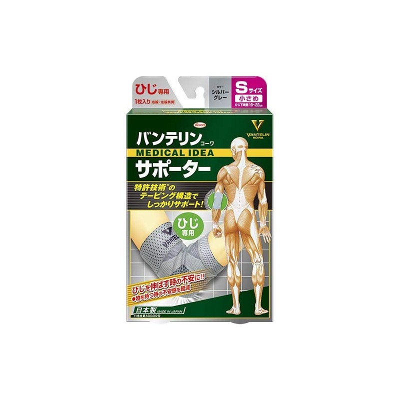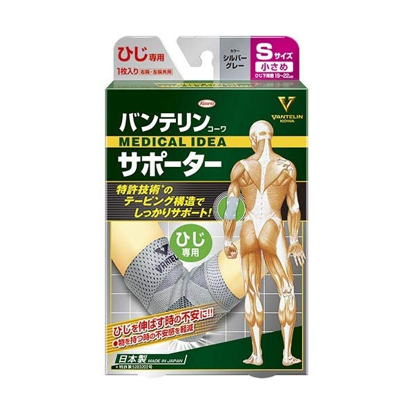 Vantelin Kowa Supporter, For Elbows, Small, Size S, 7.5 - 8.7 inches (19 - 22 cm), Silver Gray