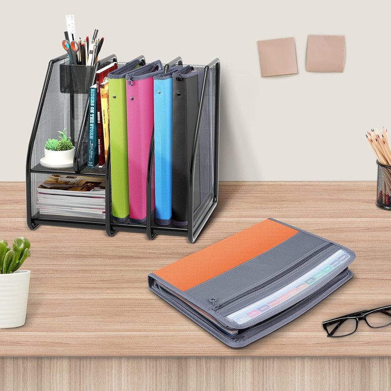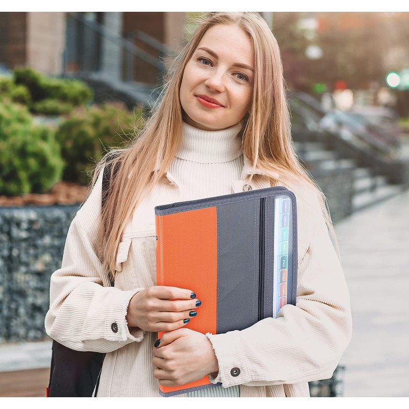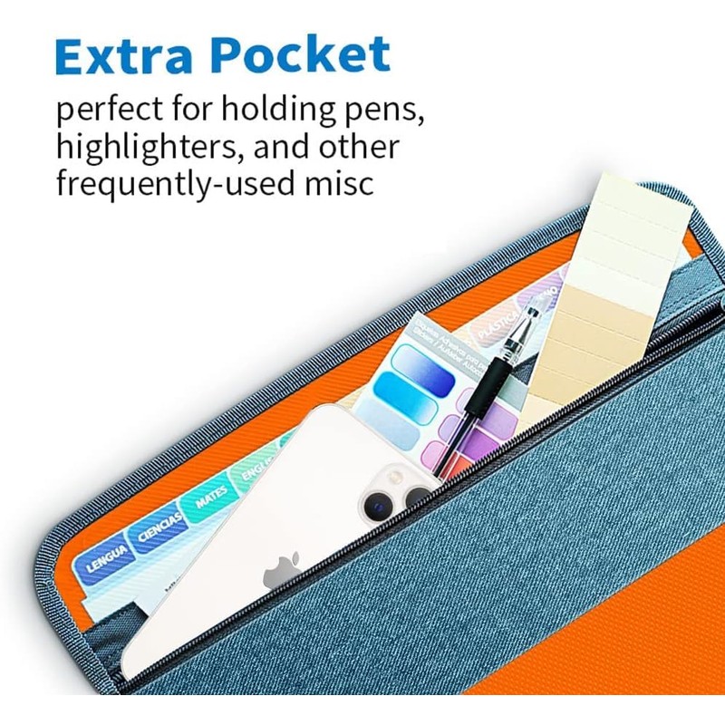 - 【Extra Front Pocket】: Comes with a sheet of colorful sticky labels for marking, identifying the contents of file folders quickly. The front pocket depth is 3.5 inches, which is perfect for holding pens, highlighters, and other frequently-used misc.