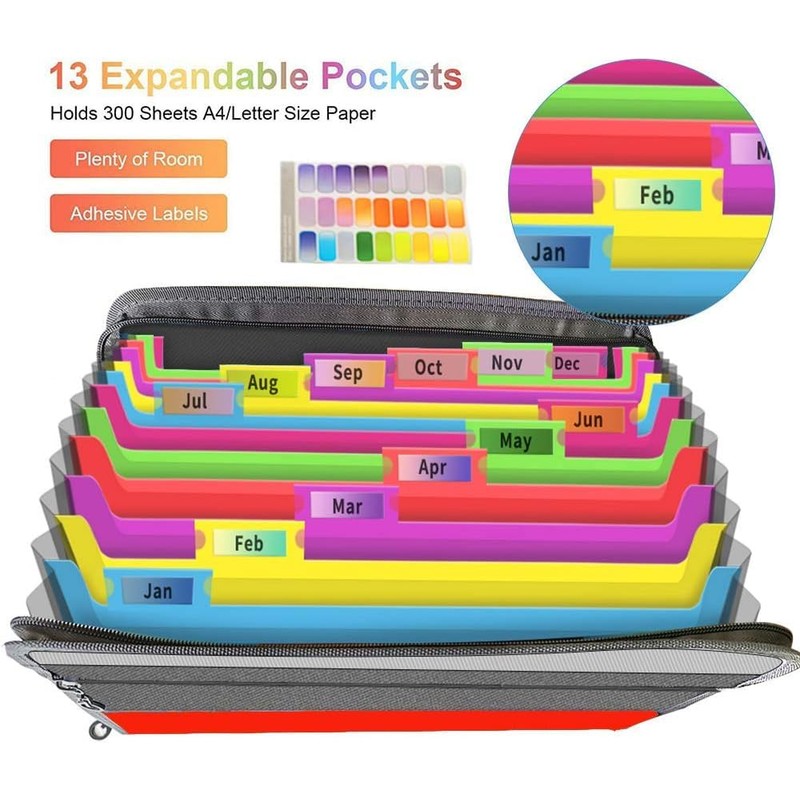 - 【Durable and Secure】: This 13 pocket expanding file has a durable plastic outer shell and secure zipper closure to protect your important documents, school papers. Reinforced gussets prevent the sides from tearing, so you can store and organize a lot.