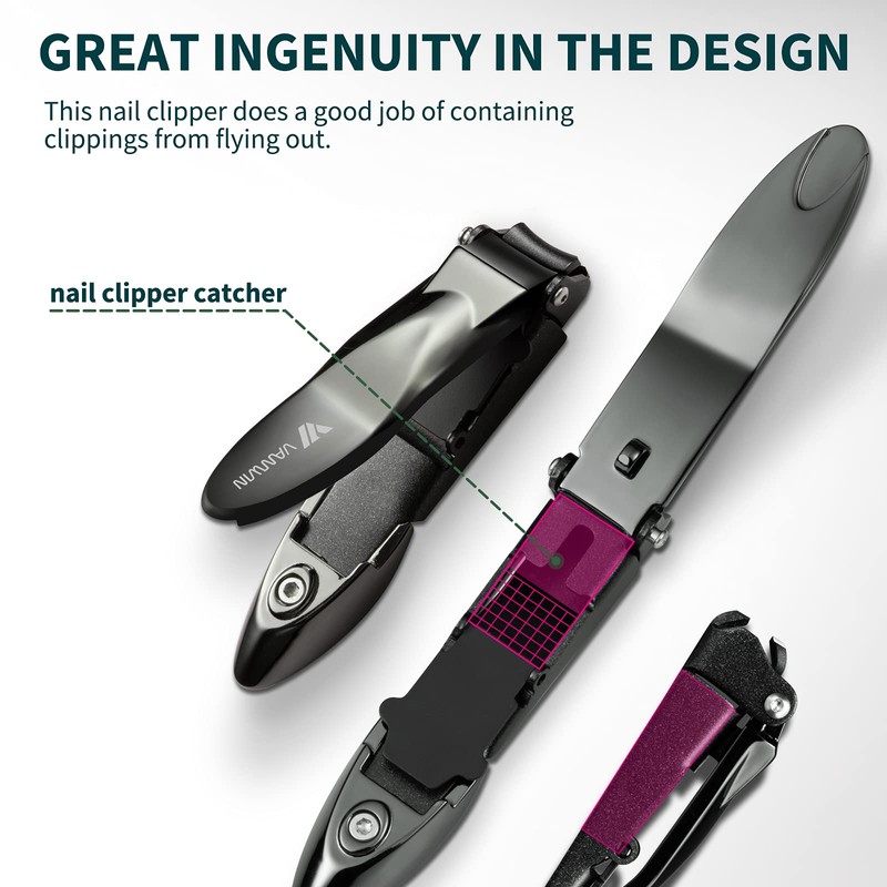 - CLEANER THAN THE REST: VANWIN nail clippers have a catcher so we don't have to worry about clipping flying all over the room. Unlike many of them that have large gaps where the clippings still manage to fly out, this nail cutter does a good job of containing them