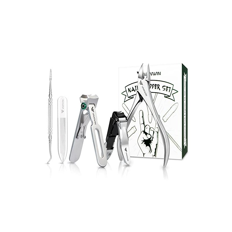 - 5-IN-1 PROFESSIONAL NAIL CLIPPER SET: This complete nail clipper set includes 1 x Wide Jaw Opening Nail Clipper, 1 x Podiatrist Toenail Clipper, 1 x Slanted Nail Clipper, 1 x Ingrown Toenail Lifter, and 1 x Ingrown Nail File – perfect for daily nail care and ingrown toenail treatment. Designed for trimming thick toenails, ingrown nails, cuticles, and side nails, this nail clipper set is ideal for seniors, men, women, and anyone seeking a professional nail grooming experience at home