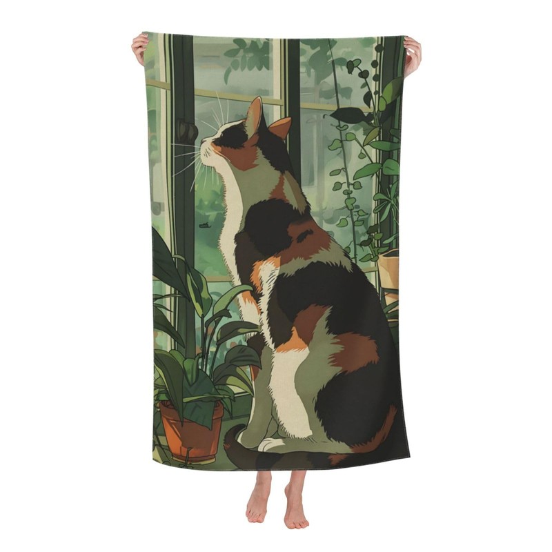 VANZEV Calico Cat Beach Towel 31inx51in, Garden Sand-Free Microfiber Bath Towel Ultra Soft Quick Dry Pool Towel Absorbent Towel Lightweight Towel for Swimming Bathroom Decor
