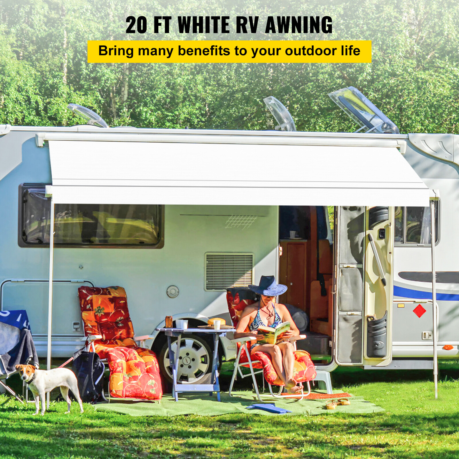 VAP-Autoparts 22Ft 8 inch Waterproof RV Awning Fabric Replacement for RV Camper Trailer White