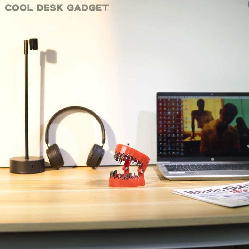 - Stylish 3D Sculpture Desk Decor: Designed with a 3D sculpture denture having 28 PCS of bit sets like human teeth, kind of a novelty, Varesee denture drill bit holder will surprise you as a stylish desk decor. The 3D sculpture effect makes it lifelike human gum, have fun to open or close the denture to meet your satisfy.