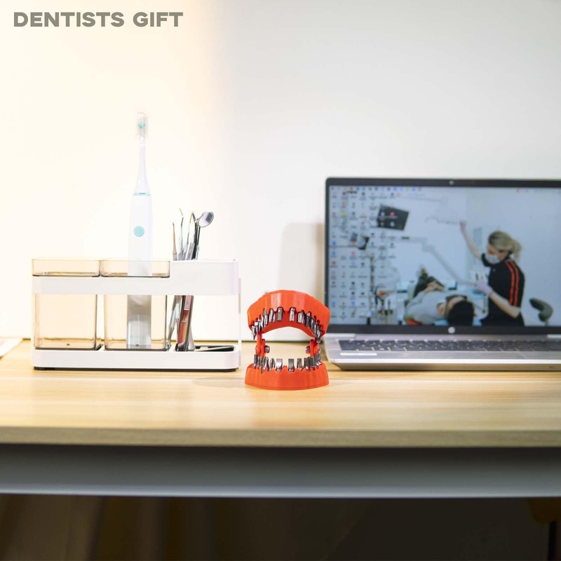 Varesee Denture Drill Bit Holder, Gag Gift for Dentist, Mouth Bit Holders, 3D Sculpture Desk Decor, Teeth Holder, 28PCS 1/4” Hex Bit, 3-in-1 Screwdriver, Desk Gadget
