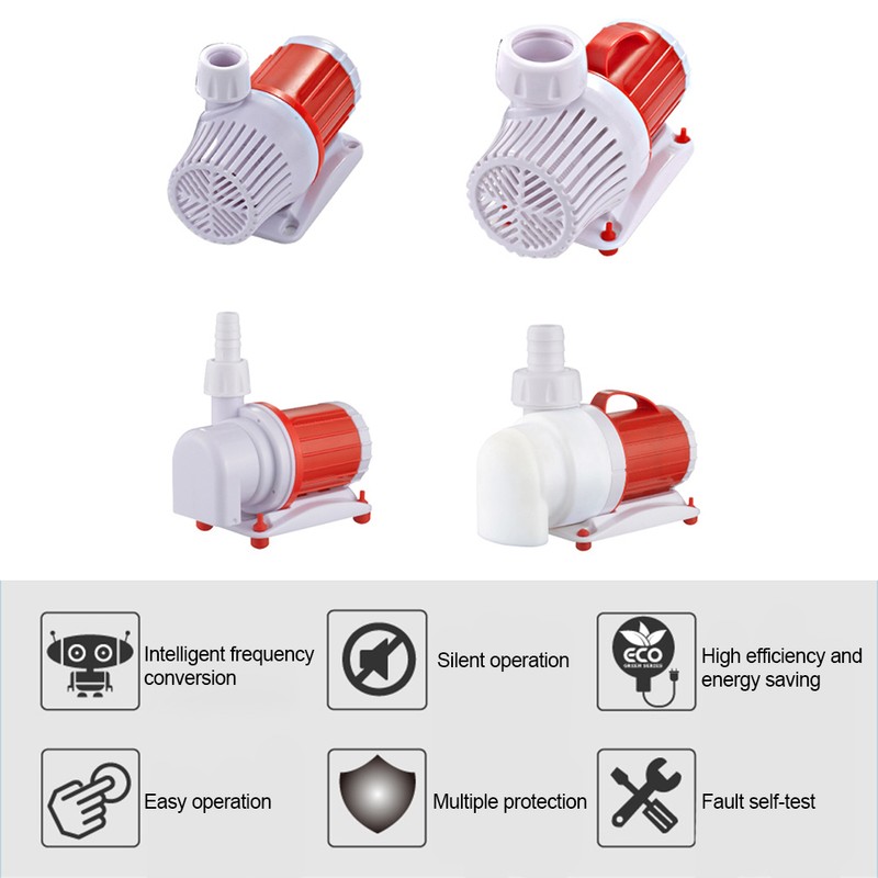 1、【Intelligent Control】: This variable frequency pump is designed to provide high efficiency and energy-saving performance. Equipped with a ceramic shaft and a sine wave variable frequency driver, it ensures smooth operation and long service life. Fit for both fresh \u0026 saltwater, it offers protection features including overload, phase loss, low voltage, and overvoltage protection, etc. With a noise level of only 38dB, it provides a quiet pumping experience while delivering high flow rate and lift. 2、【Water Pump with DC Submersible Design】: Featuring a DC submersible design, this water pump offers efficient and reliable performance. Its compact size allows it to be easily installed in various water environments. The submersible design ensures quiet operation and reduces the risk of electric shock. Ideal for low water level situations, such as fish tanks, this pump provides a constant water supply to maintain a healthy environment for aquatic creatures. 3、【Versatile Use】: Designed specifically for aquariums, this submersible pump offers exceptional versatility. Its dual-use capability allows it to be used for both underwater and land applications. With its powerful performance, it creates a dynamic and captivating underwater scene, making it perfect for enhancing the aesthetics of any aquarium. The pump\u0027s adjustable flow rate ensures optimal water circulation, providing a comfortable living environment for aquatic plants and animals.