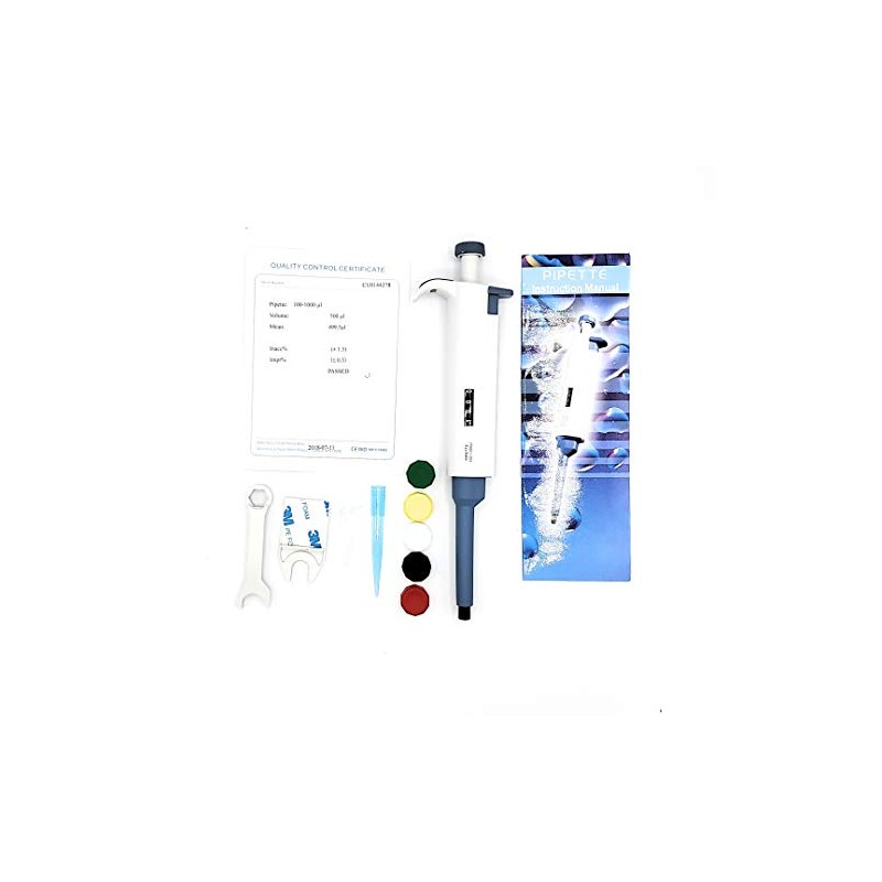 Variable Volume Single Channel Pipette, Adjustable Pipettor, 2-20 microliter