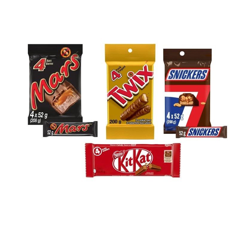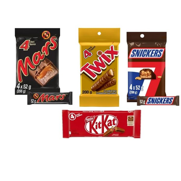 VARIETY CHOCOLATE BARS, PACK of 16 4 Mars, 4 Twix, 4 Snickers,4Kit Kat