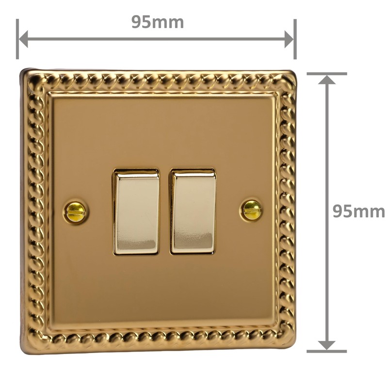 Varilight 2-Gang 10A 1- or 2-Way Switch Classic Georgian Brass with Brass Rockers