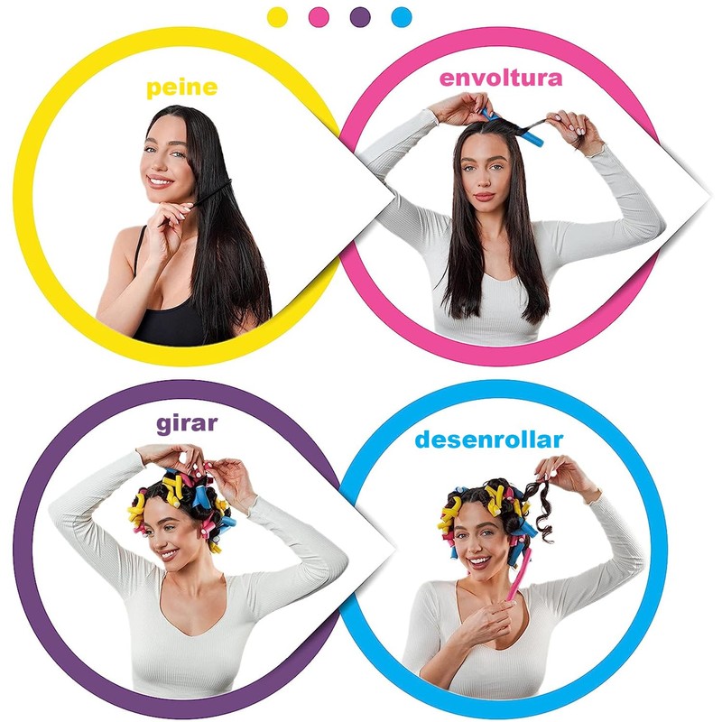 - 【Fácil de usar】Coloca el pelo ligeramente húmedo en la rulos para cabello sin calor y riza desde las puntas hasta la parte superior, doblando. Puedes secarlas con un secador de pelo o utilizarlas antes de irte a la cama; tu onda de cabello rizado se hará después de secar.