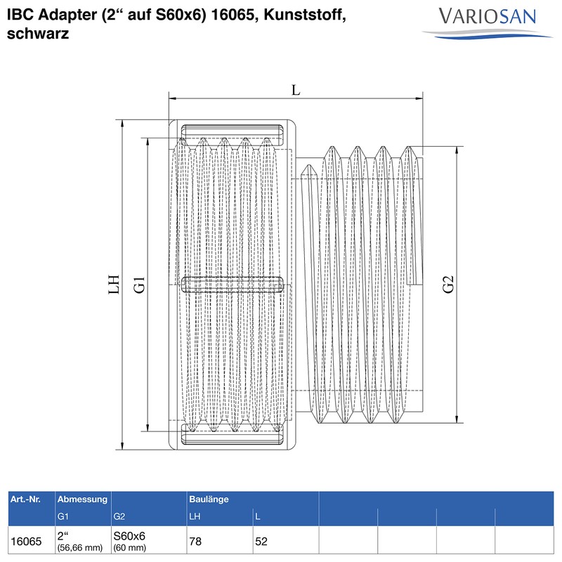 VARIOSAN VARIOSAN IBC Adapter (2" auf S60x6) 16065, Kunststoff, schwarz