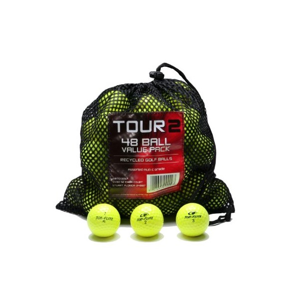 Various Brands Recycled B Grade Golf Balls in Mesh Bag (48 Pack, Optic Yellow Mixed)