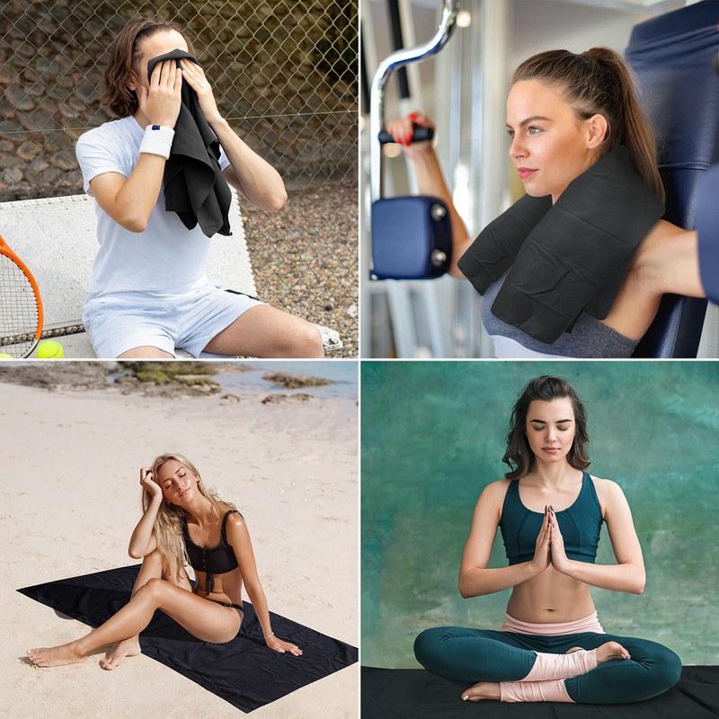 Various Sizes, Super Absorbent Microfibre Bath Towel, Ultra Compact and Lightweight, Quick Drying, Ideal for Beach, Festivals, Christmas, Camping, Swimming, Gym, Aerobics, Yoga and Sports, black