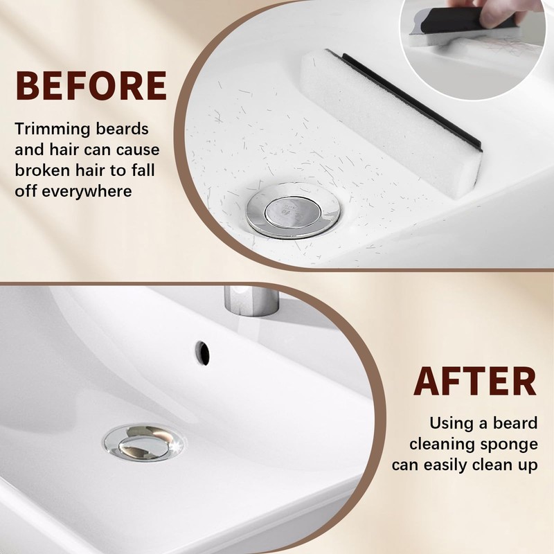 - SAY GOODBYE TO THE MESSY SINK Our Sponge for Beard Hair helps eliminate stains left behind when trimming beards. Use this handy cleaning sponge to keep the sink clean and tidy