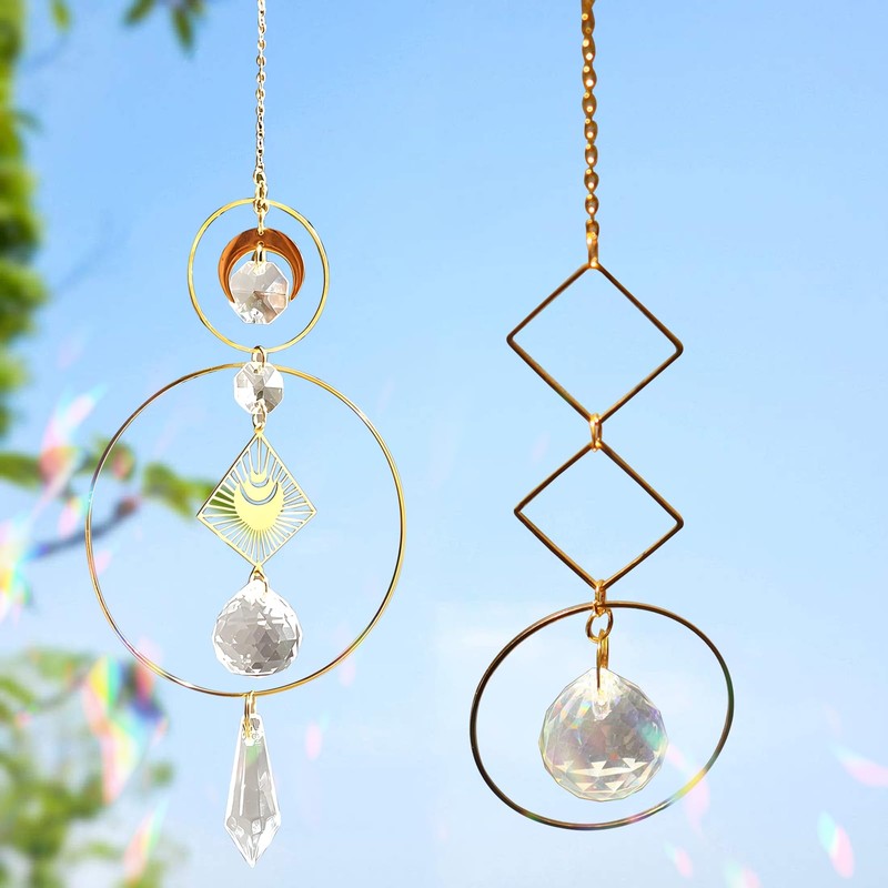1. UNIQUE BEAUTY FOR YOUR HOME The packaging includes two stunning suncatcher window ornaments with moon and large circular elements that add a touch of elegance and magic to your house.