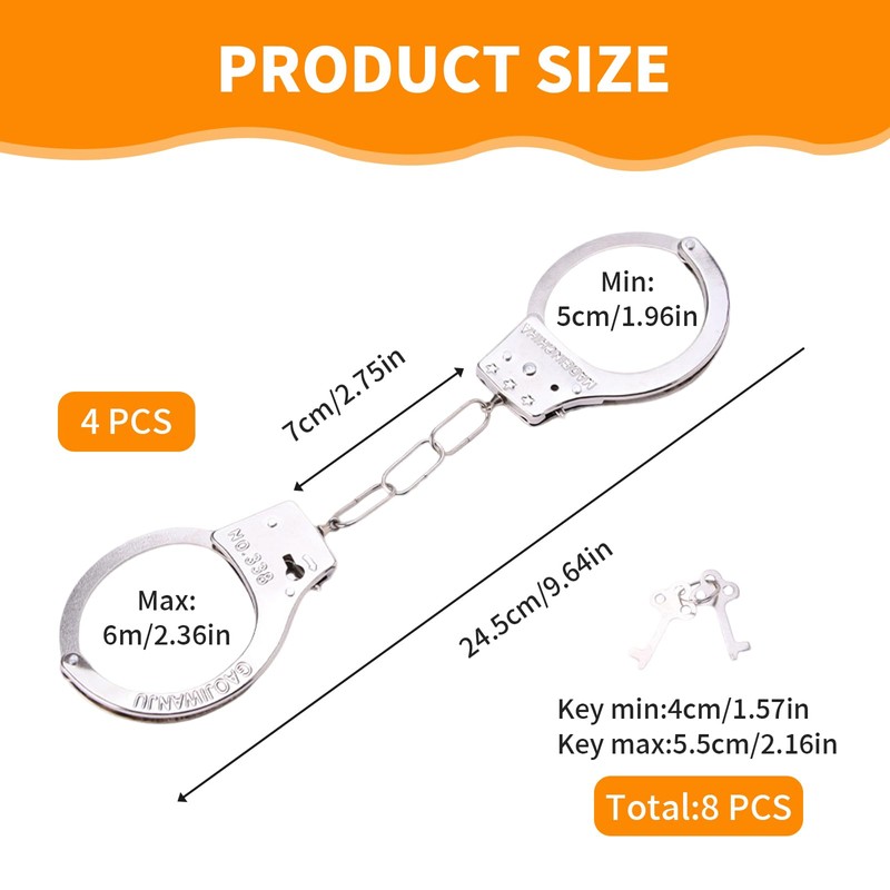 - Versatile use: our handcuffs are not only suitable for police games, but also for role play, theme parties, escape rooms, Halloween parties and more. They are an ideal accessory for costume accessories and holiday rave parties. An ideal gift for children who love real role play adventures
