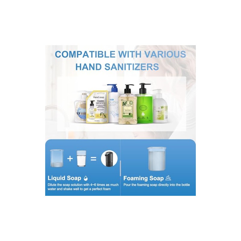 - Wide Applicationcompatible with a wide range of liquids including hand sanitizer, detergent and shampoo, perfect for use in kitchens, bathrooms and other public places such as hotels, offices, schools, hospitals, shopping centers, guesthouses and more. (Ordinary liquid soap should be deluted with 4-6 times water before use)