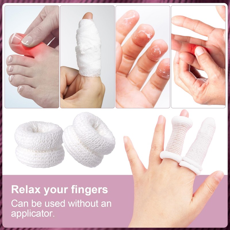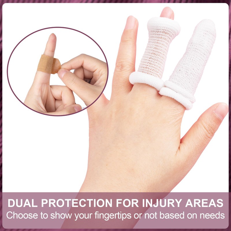 - Protect Function: The soft fingertip bandages can relieve the skin cracking, joint pain, muscle strain of your fingers. And the cotton finger tip protectors can cover the wound on your fingers, promote wound healing and prevent reinjury and infection