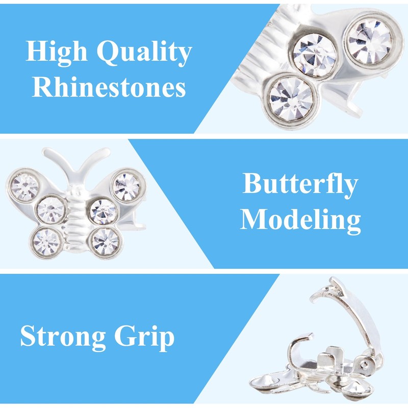 • Premium Quality: These hair clips butterfly are made of sturdy metal with glitter rhinestones on the surface, sparkly, not easy to fade or break. And the buckle design of the clips supports a strong grip, which makes the decorative hair pins not easy to slip off