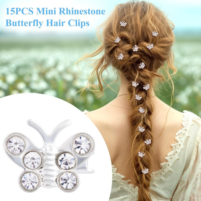 • Cute Mini Size: You will receive 15pcs rhinestone butterfly hair clips. The diameter of each butterfly hair barrette is 0.55 x 0.43 in/1.4 x 1.1 cm, stylish and cute