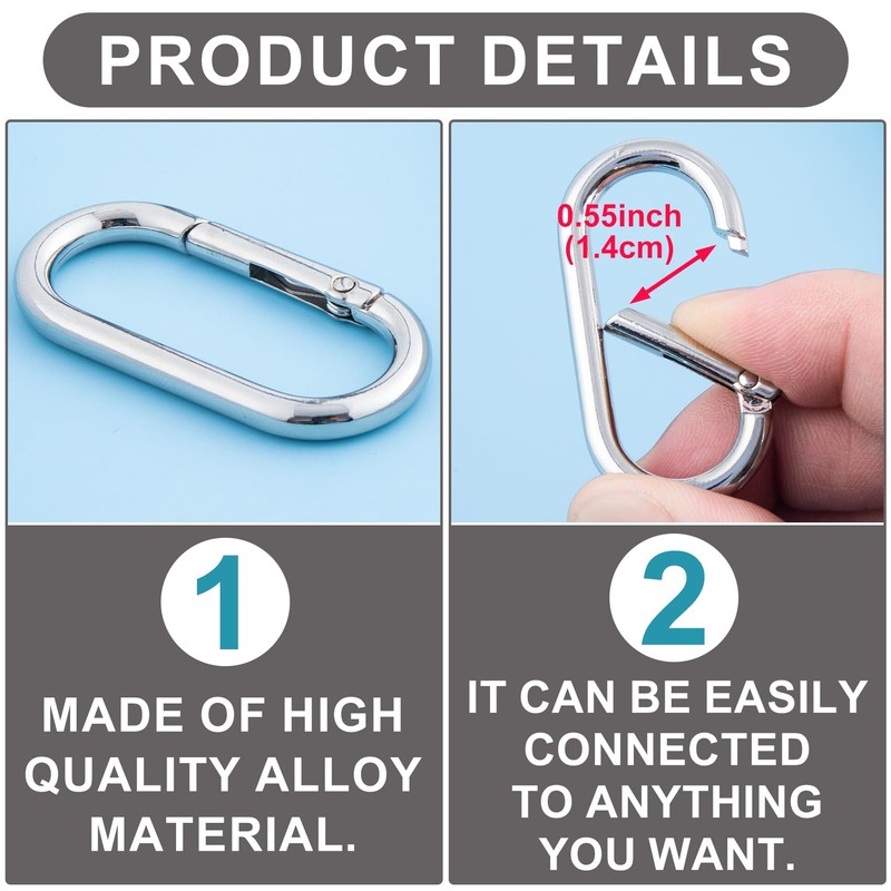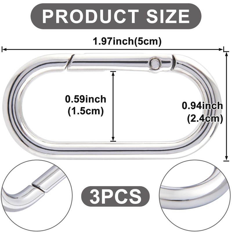 - Package Content: 3pcs oval spring carabiner clips in silver, each measuring 1.97" (50mm) in length and 0.94" (24mm) in width, with 0.59" (15 mm) inner width, easy to meet your daily keychains or bag strap replacements needs