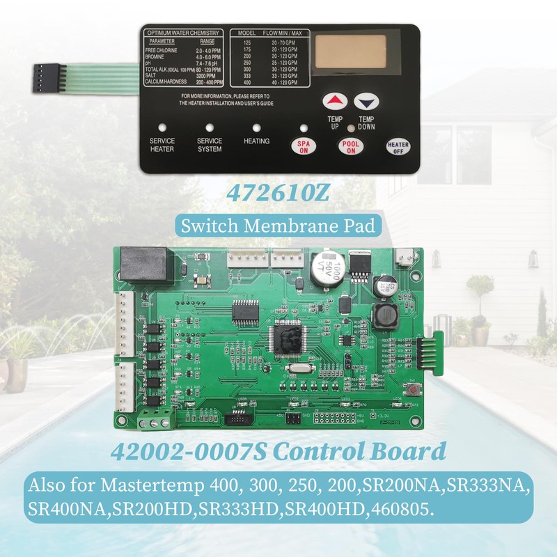 - 【OEM Compatibility】:Ensure perfect compatibility with your MasterTemp & Max-E Therm NA/LP series pool/spa heaters with these OEM numbers: Control Board - 42002-0007S, 461105, and Switch Membrane Pad - 42002-0029Z, 472610Z.