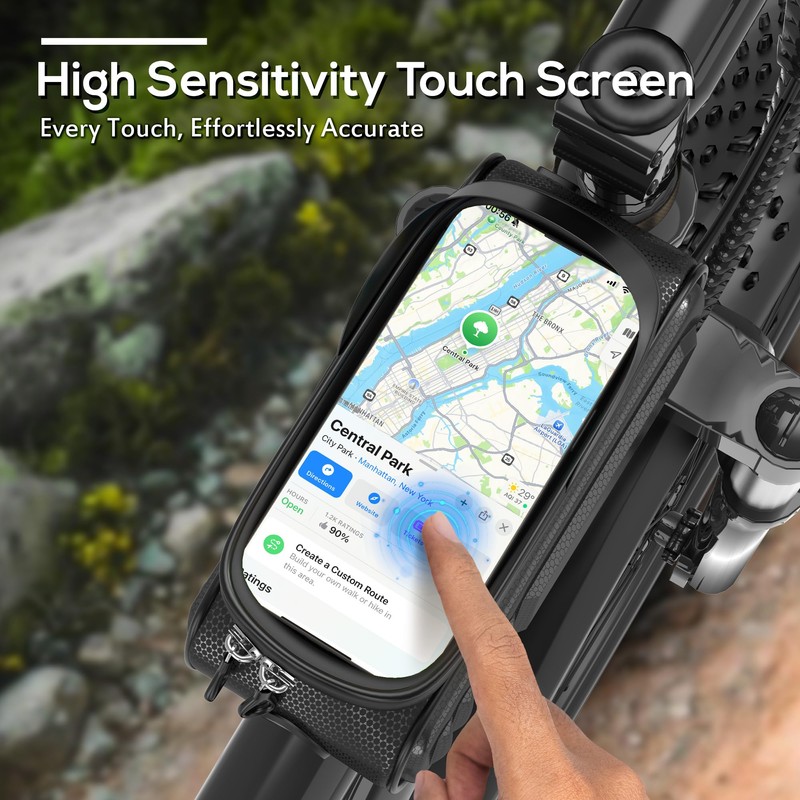 - Responsive Touchscreen Window:Features a high-sensitivity TPU film window that allows quick access to your phone’s functions without removing it from the bag — perfect for following GPS routes or tracking ride data