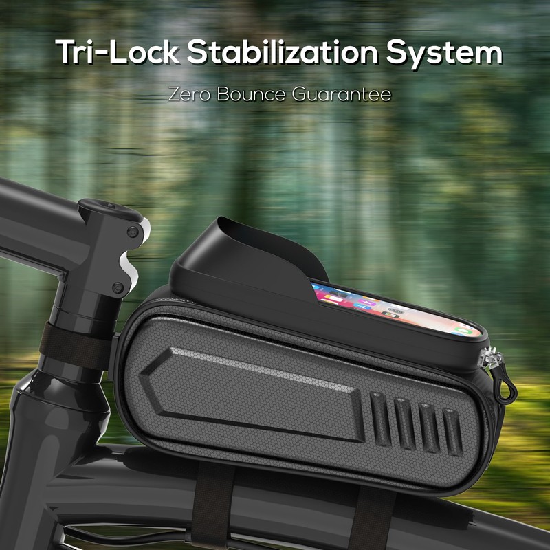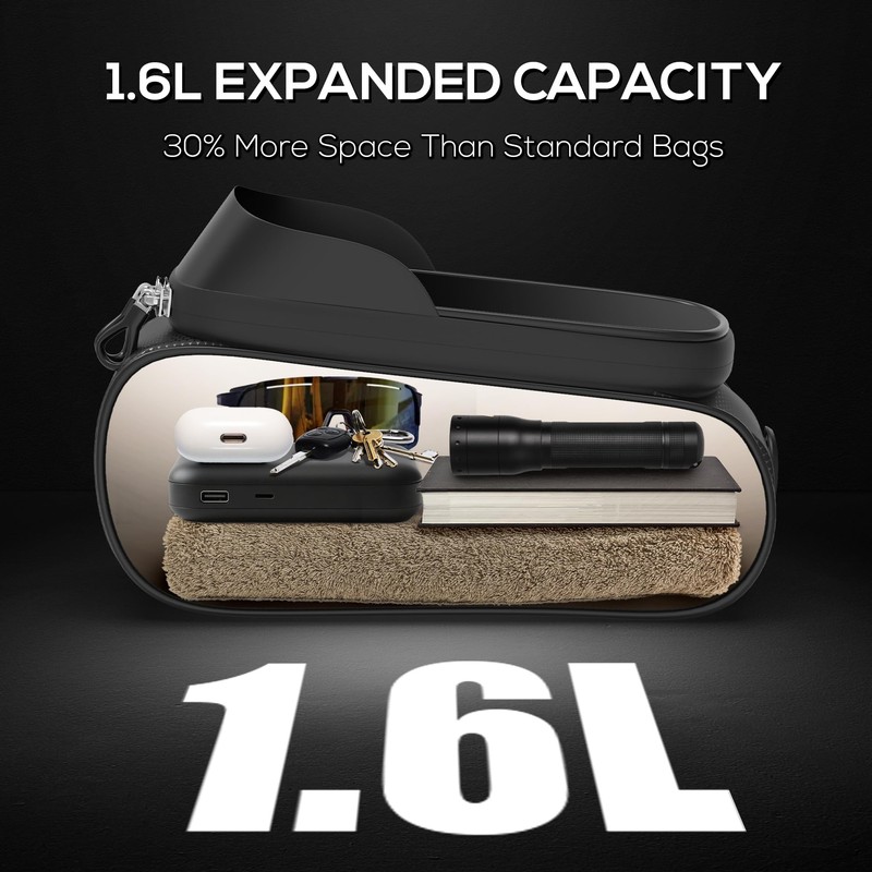 VARUN Bike Frame Bag with Touchscreen Window, Waterproof Phone Tube Bag, 1.6L Shockproof Top Tube Storage Pouch, Quick-Access Zipper, Fits Smartphones up to 7”