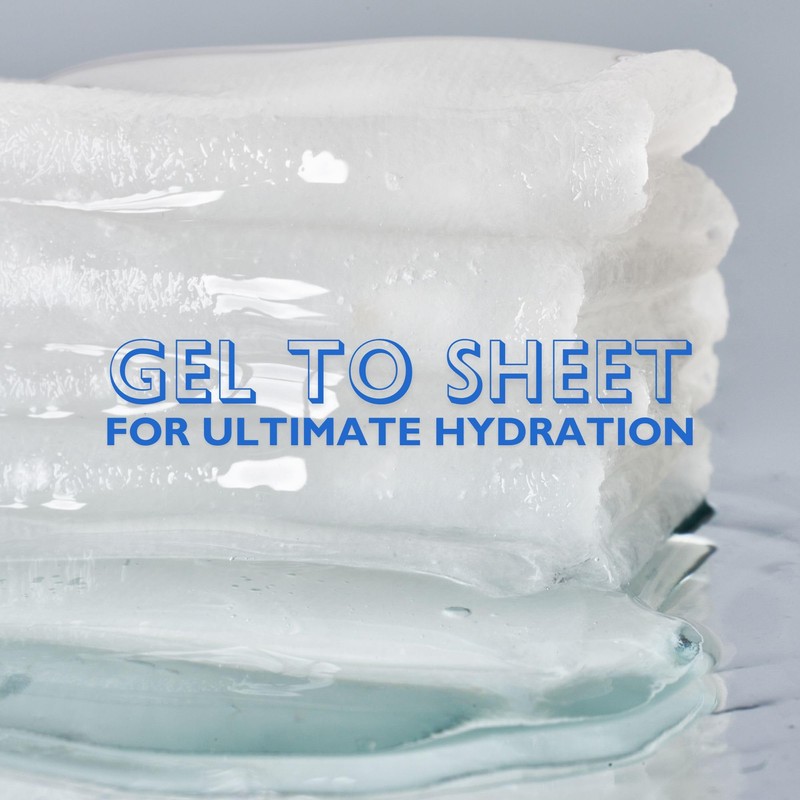 •  Semi-Gel Sheet Technology for Enhanced Absorption : Made from 100% biodegradable cellulose, this transparent gel-like sheet seamlessly adheres to the skin, locking in moisture and transforming back to white as it fully absorbs for maximum hydration efficiency.