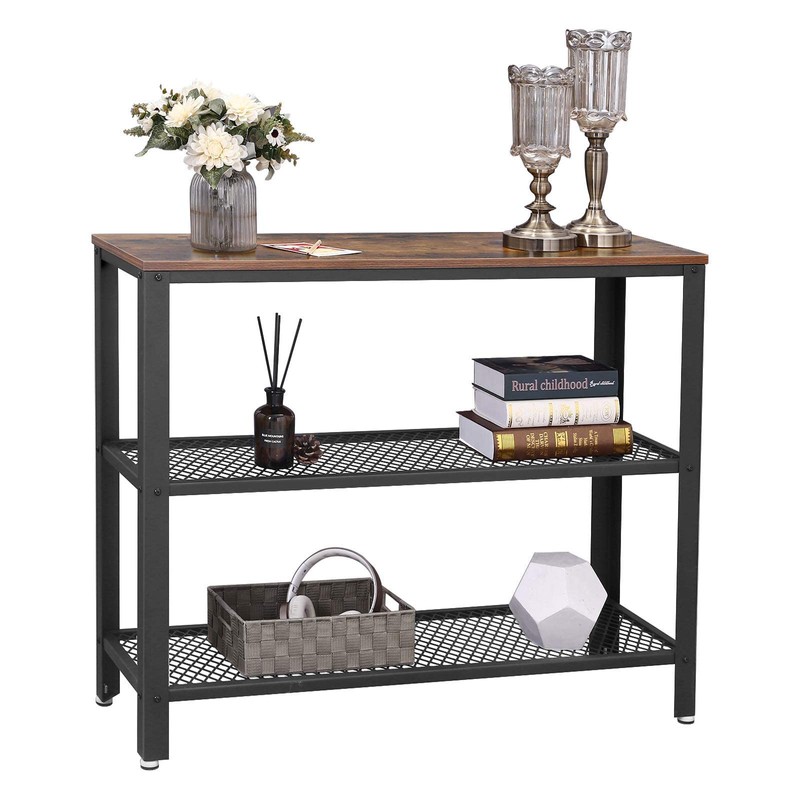- What You Get: A console table with a rustic top and 2 mesh shelves, clear instructions to simplify assembly and a great way to make your home more attractive