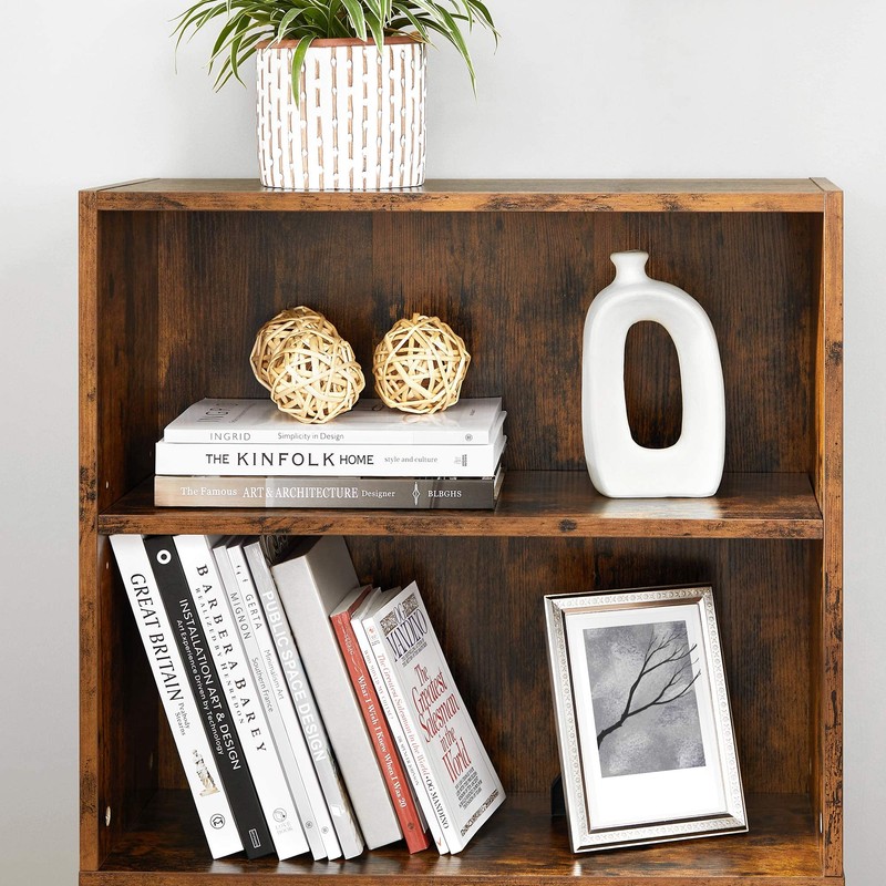 A Bookcase That Speaks to You Are books the soul of your room? Why not make them more interesting by displaying them on this simple yet charming bookshelf? The rustic brown tones of the shelves will amplify the mysterious, warm atmosphere without stealing the show of your books. Be Peaceful, Be Smart Rounding its alluring look off is a 22 lb load capacity for each shelf: robust particleboard and an anti-tip kit. That means you don’t need to worry about its contents collapsing when using it. Also, the 1st, 2nd, and 4th, 5th shelves can be adjusted to 3 heights each so you can fit in taller books. Specifications: \- Color: Rustic Brown \- Material: Particleboard \- Product Size: 23.6”L x 9.4”W x 63.1”H (60 x 24 x 160.5 cm) \- Product Weight: 44.4 lb (20.2 kg) \- Max. Static Load Capacity per Shelf: 22 lb (10 kg) \- Max. Static Load Capacity Total: 132 lb (60 kg) Package Contents: \- 1 x Bookcase \- 1 x Accessory Kit \- 1 x Anti-Tip Kit \- 1 x Instructions VASAGLE Notes: \- For safety reasons, children are not allowed to climb on or play with the product. \- Please attach the product to the wall with the included anti-tipping kit for safety. \- For daily maintenance, wipe with a damp cloth.