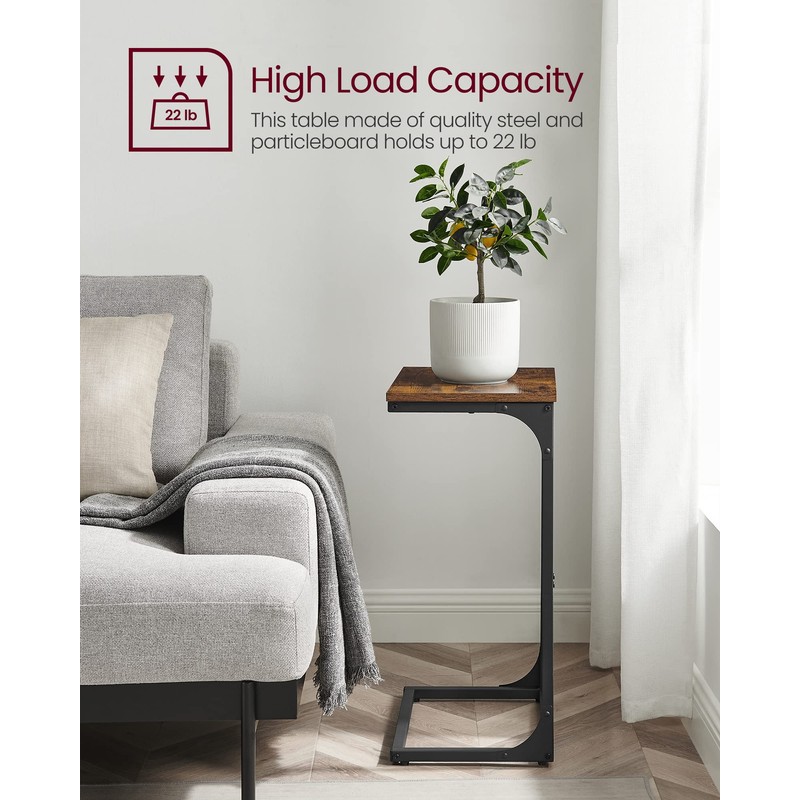 VASAGLE C-Shaped End Table, Side Table for Sofa, Couch Table with Metal Frame, Small TV Tray Table for Living Room, Bedroom, Rustic Brown and Black