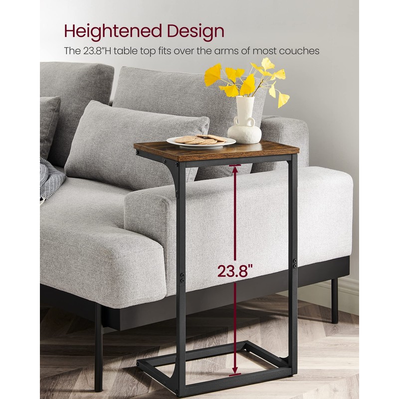 - [Perfect Sofa Sidekick] This C-shaped end table with a low 1.1” bottom frame easily slides under your sofa, and the 26.3” high table top fits over the arm of your sofa for easy access to items on it