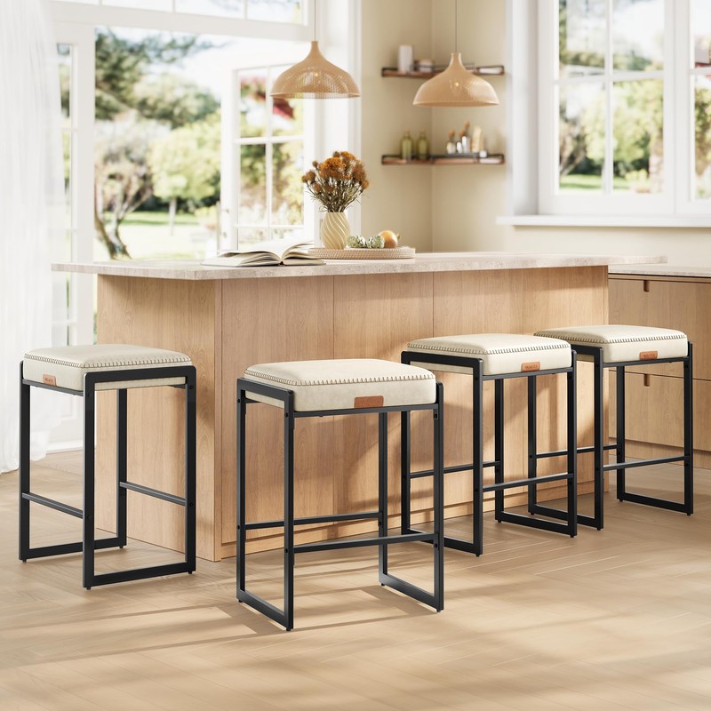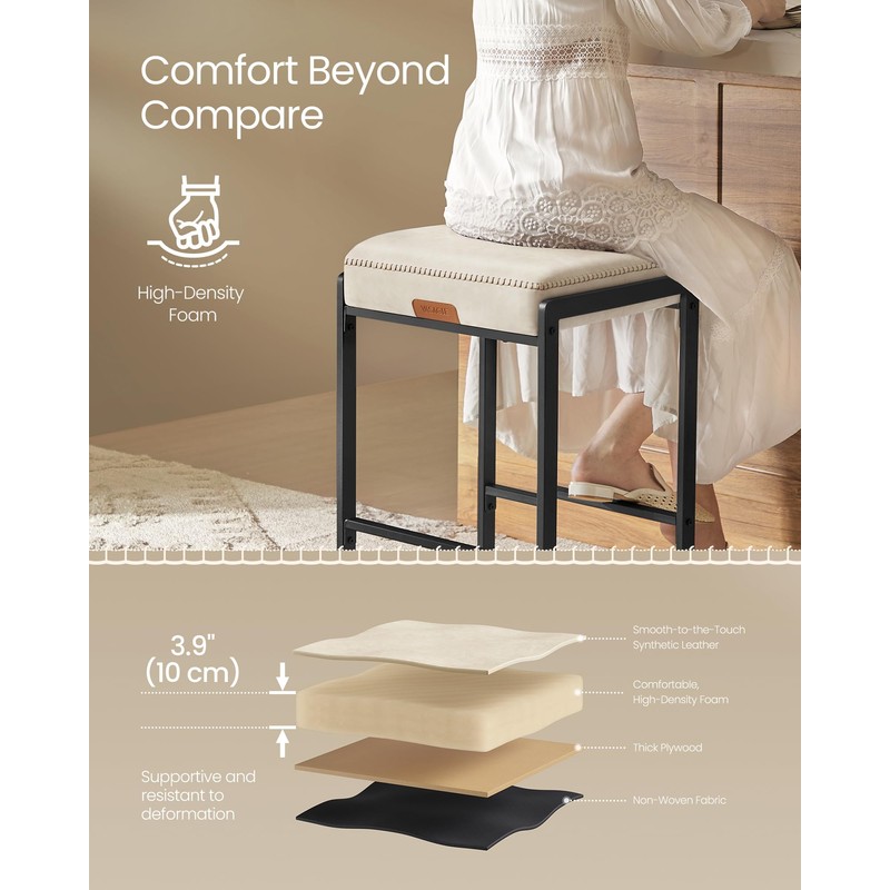 - [Sit in Comfort] The roomy 15"D x 17.7"W seat surface of these kitchen stools, enveloped in a smooth cover and filled with a 3.9" thick high-density foam cushion, offers excellent support. Experience enduring comfort that stands the test of time