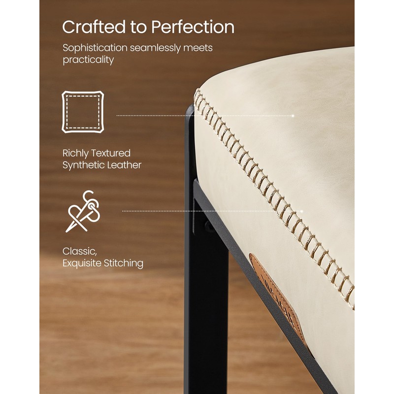 VASAGLE EKHO Collection - Bar Stools Set of 4, Counter Height Bar Stools, Synthetic Leather with Stitching, Mid-Century Modern Counter Stools, 26-Inch Tall, Kichen Home Bar Dining Room, Cream White
