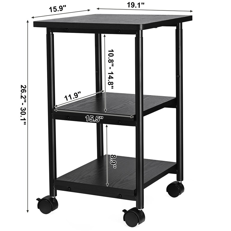 - Flexibility Stands Out: With the adjustable table top, you get a flexible space with a lower height at 26.6” or a higher height at 30.1”. All you need to do is set it at your favorite height and invite printers, paper reams, and other office supplies in