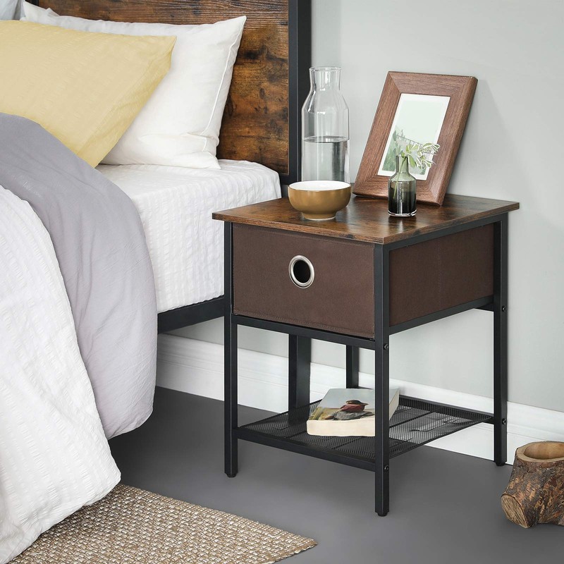 VASAGLE ULET203B01 End Tables, 1-Pack, Rustic Brown, Black