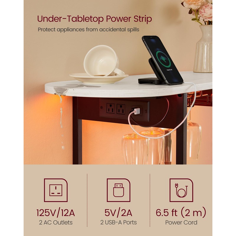 - CONVENIENT POWER OUTLETSThis coffee bar cabinet features 2 AC outlets and 2 USB-A ports, allowing you to conveniently power up an ice maker or coffee table and charge your devices. Never worry about power issues during your gatherings
