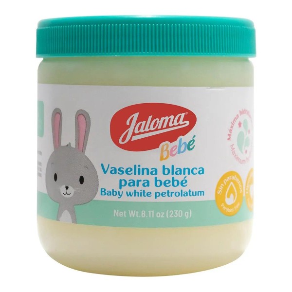 Vaselina Blanca para Bebé es un producto de uso tópico que se utiliza comúnmente para proteger y suavizar la piel delicada de los bebés. Viene en un frasco con 230 gramos de vaselina.