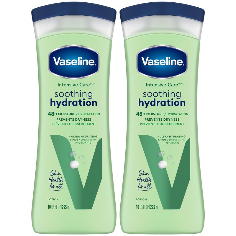 Vaseline Soothing Hydration 2-Pack – Intensive Care Moisturizing Hand and Body Lotion with Aloe, Ultra-Hydrating Lipids, 48 Hours of Moisture, 10 Oz Ea