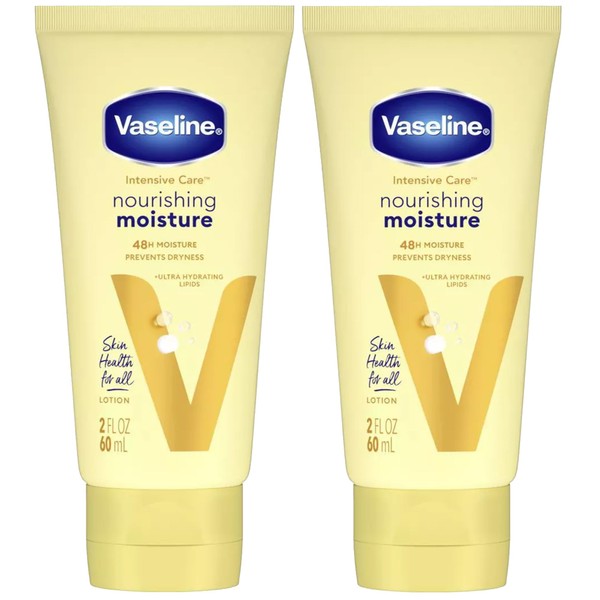 Vaseline Lotion, Intensive Care Nourishing Moisture 2-Pack – Moisturizer with Oat Extract + Ultra-Hydrating Lipids for Healing Extremely Dry Skin, 2 Oz Ea