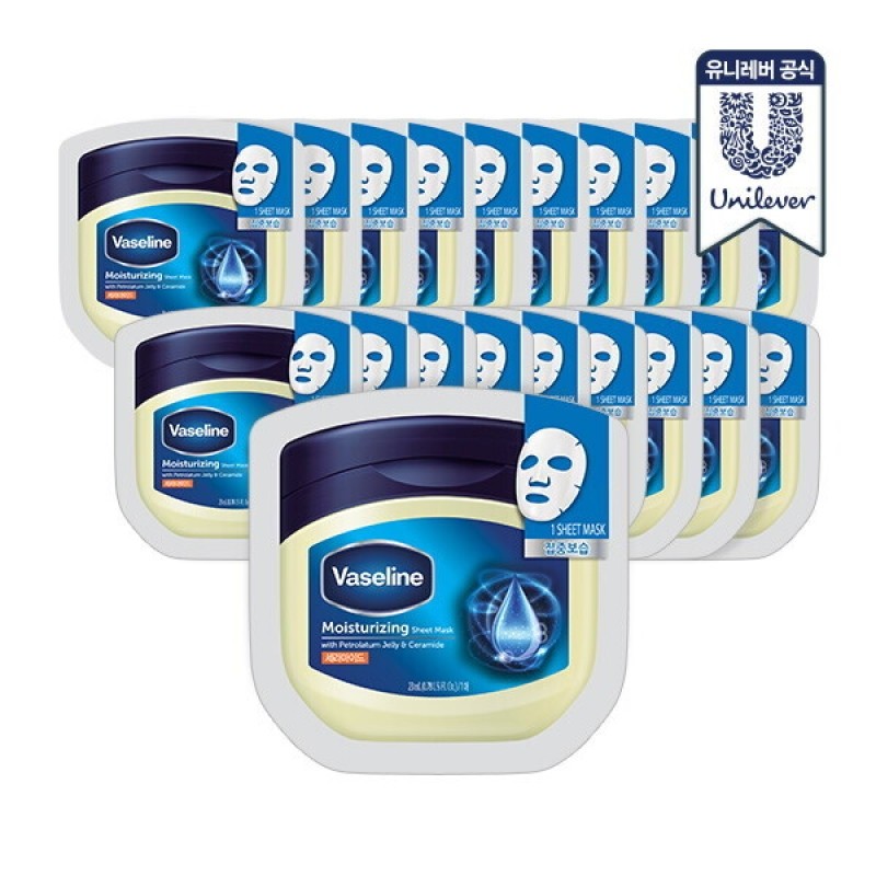 Vaseline Mask Pack 20 Sheets (Moisturizing/Hydration/Nutrition) / 바세린 마스크팩 20매입 (보습수분영양)