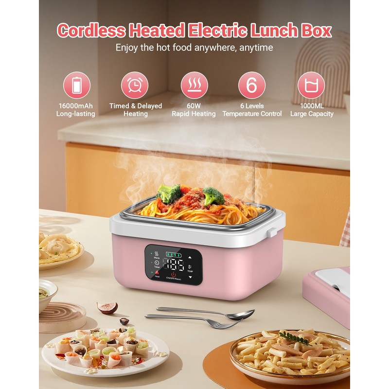 VASG Cordless Self Heating Lunch Box for Work, Electric Lunch Box for Adults