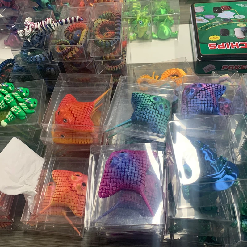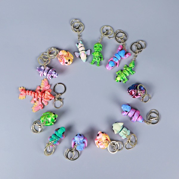 Vashine 3D Printed Friendly Materials Joint Moving Flexible Crystal Keychain PLA Figure Bag Flexible Crystal DecorationsColor: Random style three-piece set