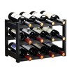 VASMIA VASMIA Bamboo Wine Rack, Sturdy and Durable Wine Storage Cabinet Shelf, Wine Racks Countertop for Pantry,Kitchen,3-Tier 12 Bottles Wine Rack Black