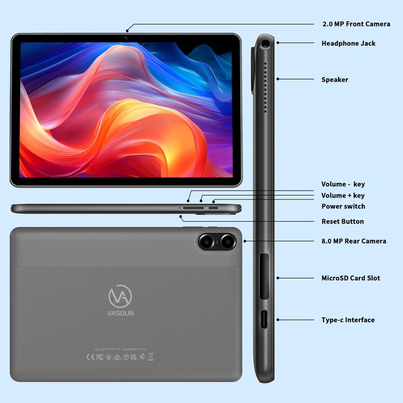- 2024 Newest Updated Android 13: The VASOUN tablet is powered by Android 13, the new UI interface design offers user privacy protection features to ensure greater security. With an UP TO 2.0GHz, this android tablet offers a 40% increase in performance compared to traditional 1.6GHz frequency.
