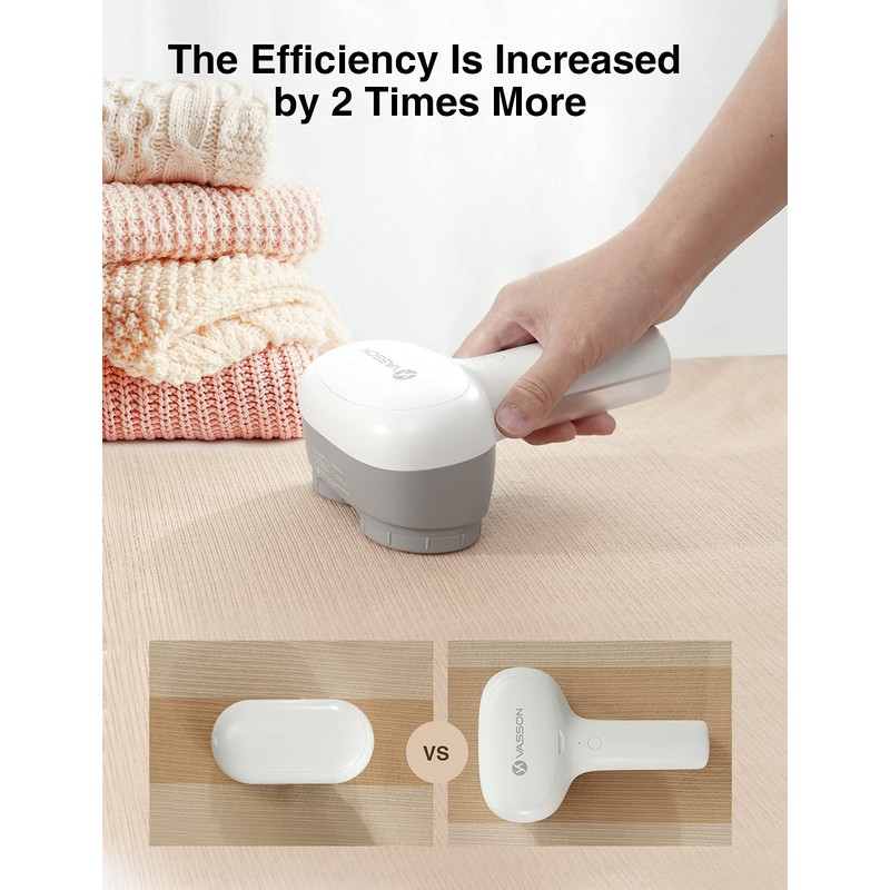 Thanks to the large-capacity batteries, VASSON can work for 1-hour continuously without recharging it so you can also remove lint and fuzz from large household fabrics like blankets or bedding sheets.